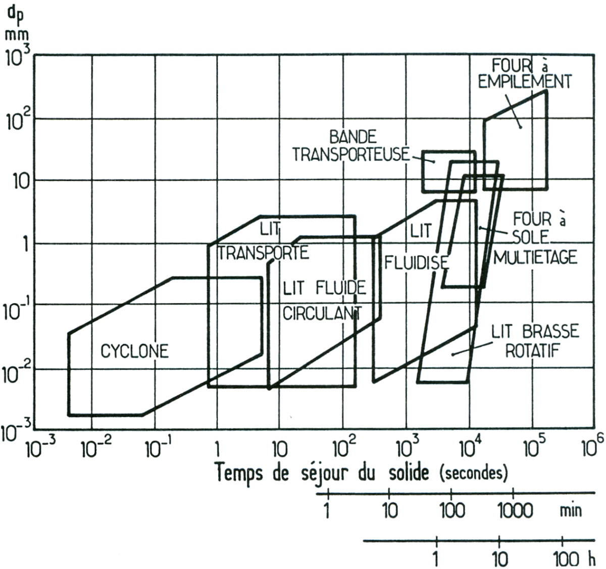 Le graphique suivant présente les domaines d'utilisation des différents types de réacteurs à solide consommable.